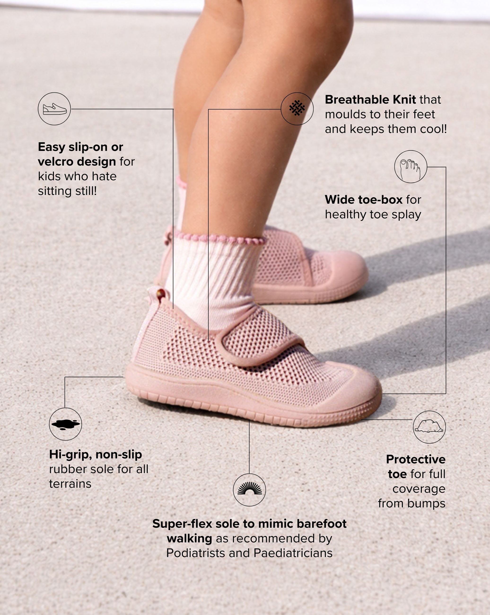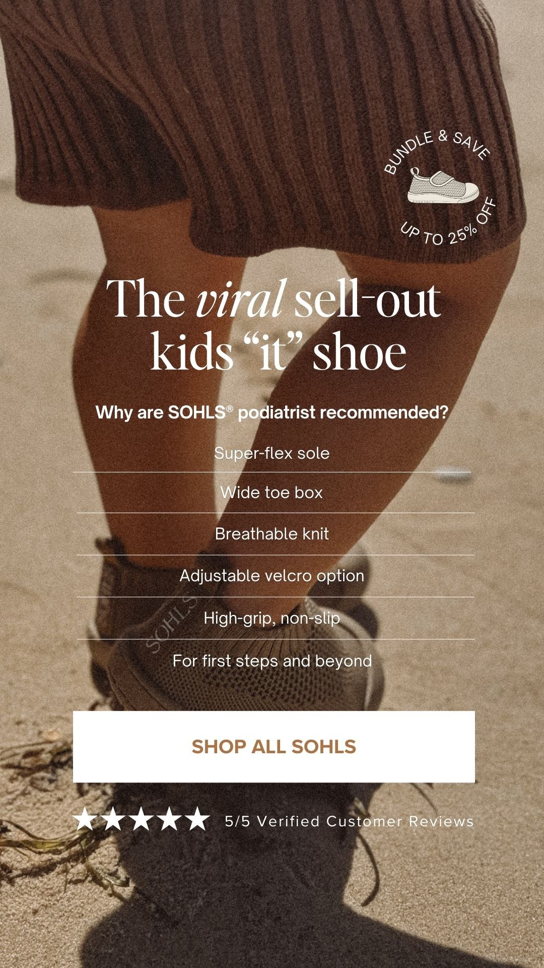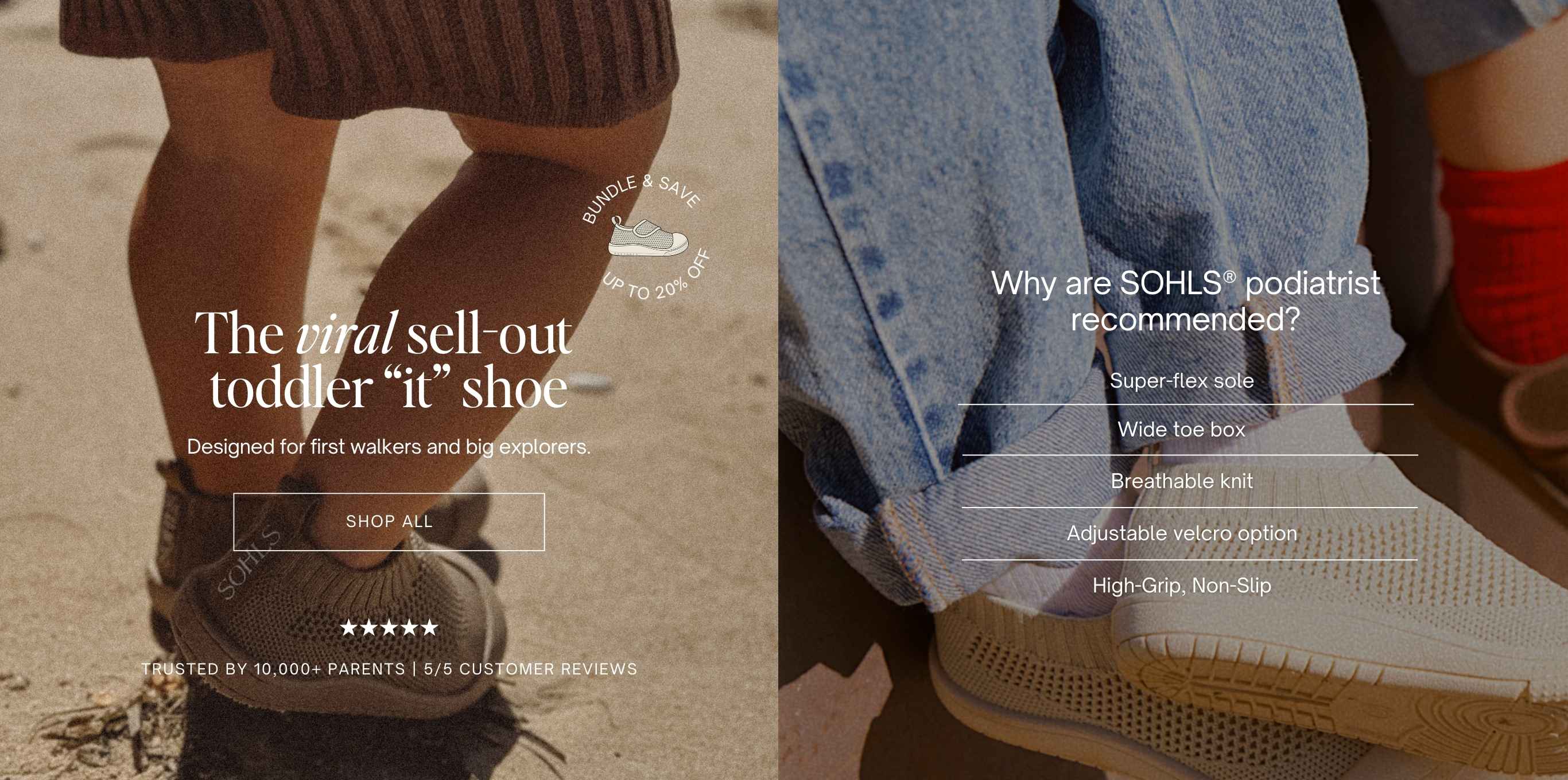 SOHLS® baby and toddler shoes are thoughtfully designed for healthy foot development – premium, practical, and made to move like barefoot walking. With flexible soles and podiatrist-approved features, they support growing feet the way nature intended. Born in Bondi, Australia and trusted by parents worldwide (with hundreds of 5-star reviews to prove it!).